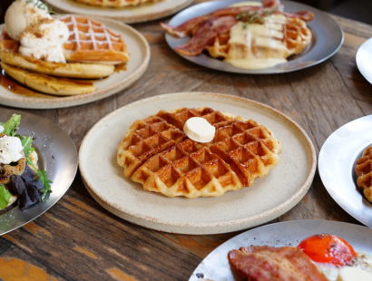 大阪府立中之島図書館にオリジナルワッフルの専門店「囲と囲曲」大阪府立中之島図書館(大阪市北区)に4月3日、オリジナルワッフルの専門店「囲と囲曲(カコとイマ)」がオープンする。