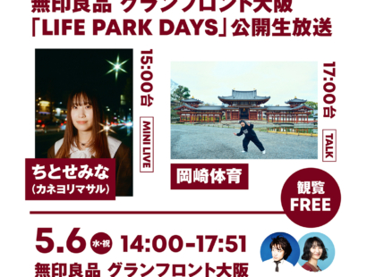 エンタメ FM802が無印良品グランフロント大阪から公開生放送 カネヨリマサル・岡崎体育さん出演無印良品グランフロント大阪(大阪市北区)で5月6日、FM802による公開生放送イベント「FM802 HOLIDAY SPECIAL 無印良品グランフロント大阪 LIFE PARK DAYS」が開催される。