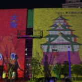 東洋陶磁美術館の壁面にプロジェクションマッピングを投影