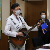 筋原区長がオリジナルソングのおめでとうバージョンを披露