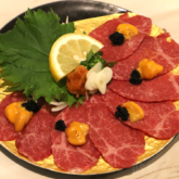 薄切りロース刺し(ウニ&ランプフィッシュキャビア 1,480円)