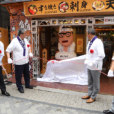 「がんこおやじ」巨大オブジェ除幕式
