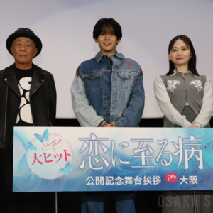 TOHOシネマズ梅田(大阪市北区)で10月28日、映画「恋に至る病」の舞台挨拶が行われ、主演の長尾謙杜さん(なにわ男子)、山田杏奈さん、そして廣木隆一監督が登壇した。