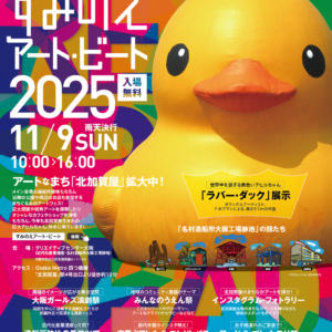 クリエイティブセンター大阪(大阪市住之江区、名村造船所大阪工場跡地)で11月9日、巨大アヒル「ラバー・ダック」が登場する恒例イベント「すみのえアート・ビート 2025」が開かれる。