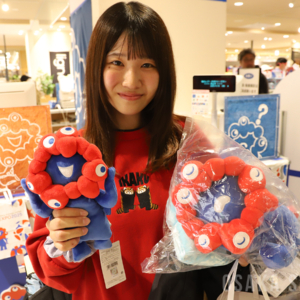 ミャクミャクもちもちぬいぐるみを購入した来店客