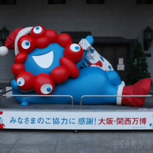 「ミャクミャクモニュメント」がサンタクロース姿に