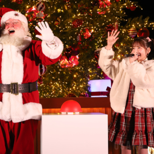もえのあずきさん(右)が点灯式に登場