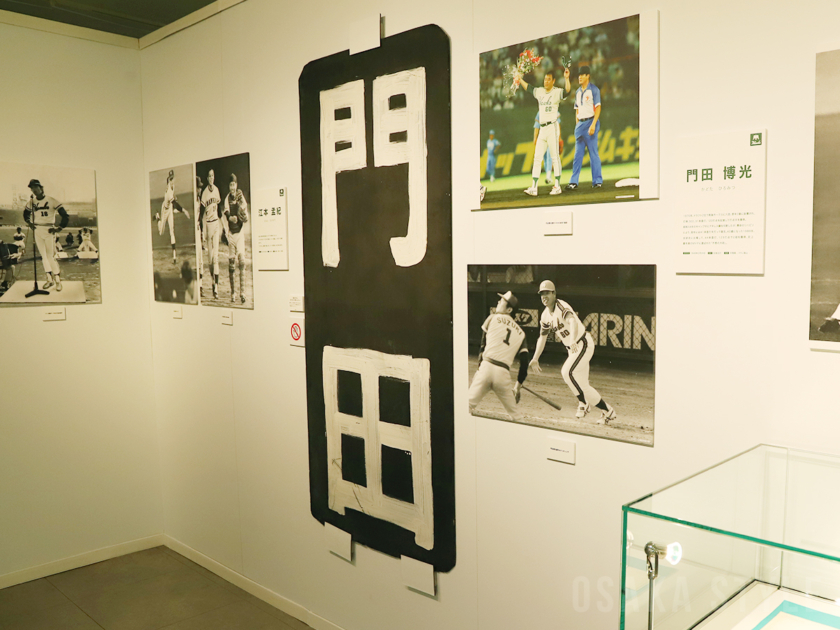 会場には、1964年の日本シリーズ優勝ペナントをはじめ、野村克也さんが着用していたジャージ、門田博光さんのスタメンボード用ネームプレート、近田豊年さんのグローブなど、貴重な品々が並ぶ。