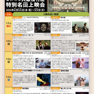上映スケジュールは、「ニュー・シネマ・パラダイス」(11日11時~)、「砂の器」(11日14時~)、「ボディガード」(12日11時~)、「ラストエンペラー」(12日14時~)、「男はつらいよ 浪花の恋の寅次郎」(13日11時~)、「男はつらいよ 寅次郎あじさいの恋」(13日14時~)、「さらば宇宙戦艦ヤマト 愛の戦士たち」(14日11時~)、「蒲田行進曲」(14日15時~)、「東京物語」(15日11時~)、「風と共に去りぬ」(15日14時~)。