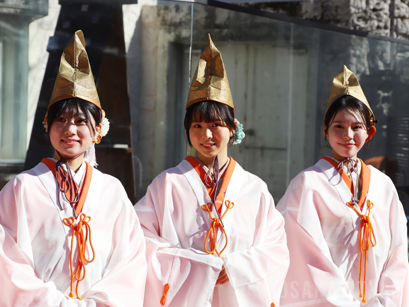 天王寺動物園(大阪市天王寺区)で1月6日、今宮戎神社(大阪市浪速区)の「十日戎」の福娘が同園に福笹を贈る贈呈式が行われた。