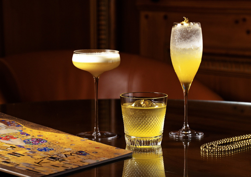 「ザ・バー」のバーテンダー・小笠原一茶さんが、同展に登場する3つの名作にオマージュを捧げたカクテル2種とモクテル1種を創作。クリムトの美学を一杯のグラスに閉じ込めたアートカクテルを、展覧会でも紹介されている名作「アデーレ・ブロッホ=バウアーの肖像Ⅰ」をあしらったオリジナルコースターとともに提供する。