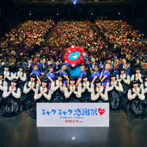 ミャクミャクやアバンギャルディなどの出演者と記念撮影