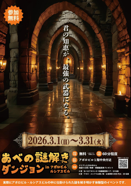 無料周遊型謎解きイベント「あべの謎解きダンジョン」https://www.tokitokievent.com/abeno2026