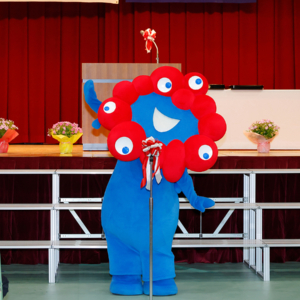 ミャクミャクがあいさつ(大江小学校で3月18日)