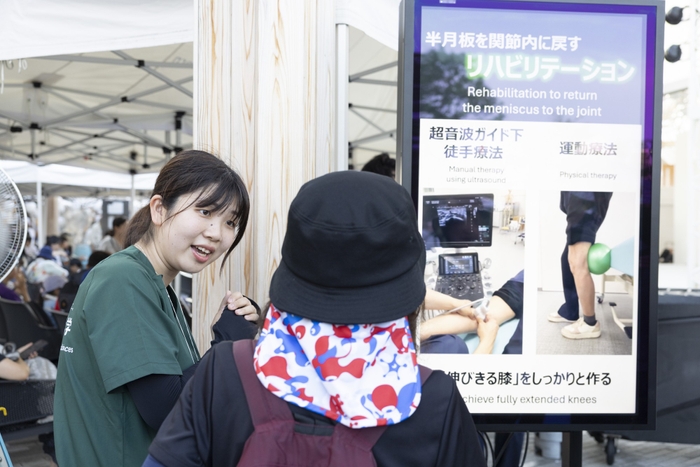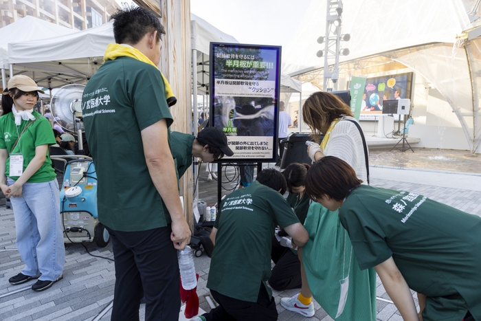 「股関節を守る!センサーを用いた最新のリハビリテーション」や「Stop膝痛!あなたの半月板は大丈夫?」などをテーマに、運動器に関する研究成果を紹介しました。学生が来場者に研究内容や測定方法を丁寧に解説し、研究成果の社会発信と教育的実践が同時に実現したブースとなりました。