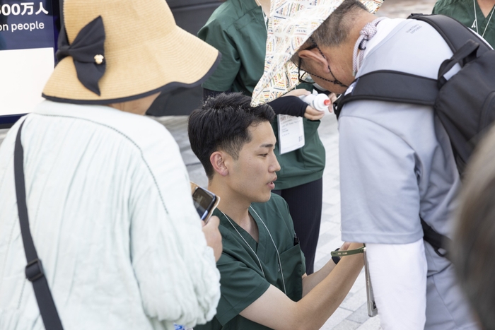 また、本学学生も運営スタッフとして多数参加し、測定サポートや研究内容の紹介を担当。専門的な知識を活かしながら積極的に来場者とコミュニケーションを図る姿は、多くの方から好評をいただきました。学生にとっても自身が携わる研究に対して、一般の方が興味関心を持たれる様子を間近で体感でき、喜びを感じるとともに今後のモチベーション向上にもつながる貴重な経験となりました。