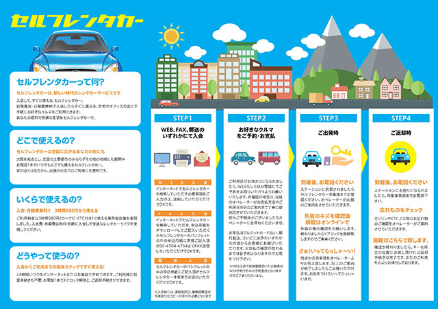 「セルフレンタカー」は、専用アプリやWebサイト(https://selfrentacar.com)から予約すると、スマートフォンでそのまま車両の解錠・施錠が可能な完全無人型のレンタカーサービスです。