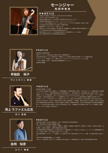 セーンジャー(馬頭琴)、早稲田桜子(ヴァイオリン)、虫明知彦(ピアノ)、渕上ラファエル広志(尺八)