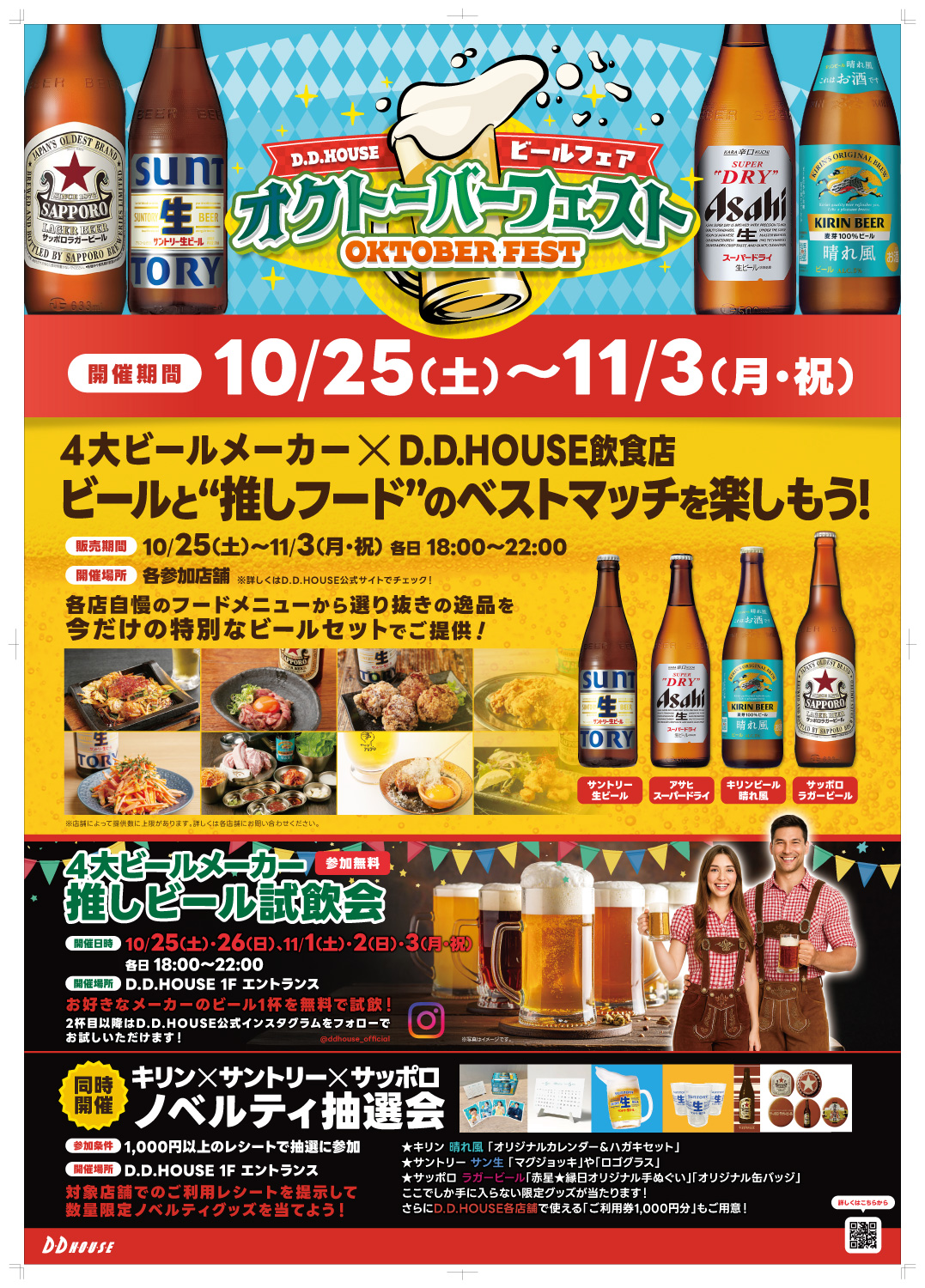 ■D.D.HOUSE初のオクトーバーフェスト!日本4大メーカーのビールと多種多様なメニュー提供
