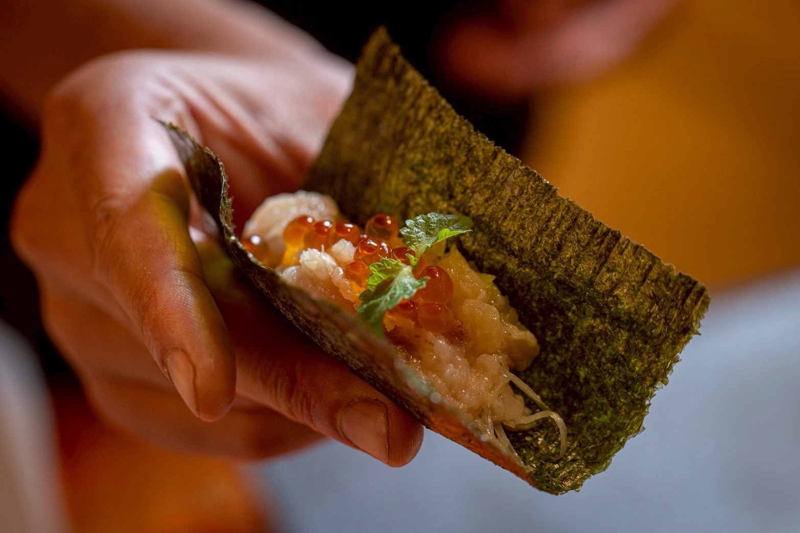 提供する鶏肉は、京都・亀岡の川のほとりで平飼いされ、適度な弾力と濃厚なうまみが特徴のオリジナルブランド鶏「京七谷赤地鶏」。このほか旬の京都産オーガニック野菜や京都の地酒など、可能な限り地元・京都の食材を使用します。【天】日本の四季の恵み、【地】京都の食材、【人】焼師や料理人の技と、【天地人】のコンセプトを存分に表現した料理やサービスをお楽しみいただければと思います。