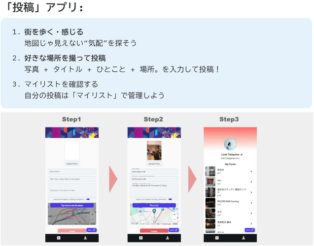 「timespace」とは、“自分の感性でまちを再発見・編集できる”新感覚アプリです。大量のテキストデータを学習し、自然な文章の理解が可能な大規模言語モデル(LLM)の文脈解析を用いて“あなたの感性に行き先を発見してもらう”まったく新しい体験ができます。アプリ上に表示される場所の情報を好き・嫌いで選択、所要時間から今の自分にぴったりなルートを探す「探索」と、街を歩き、感じたものを「投稿」する2つの機能があります。