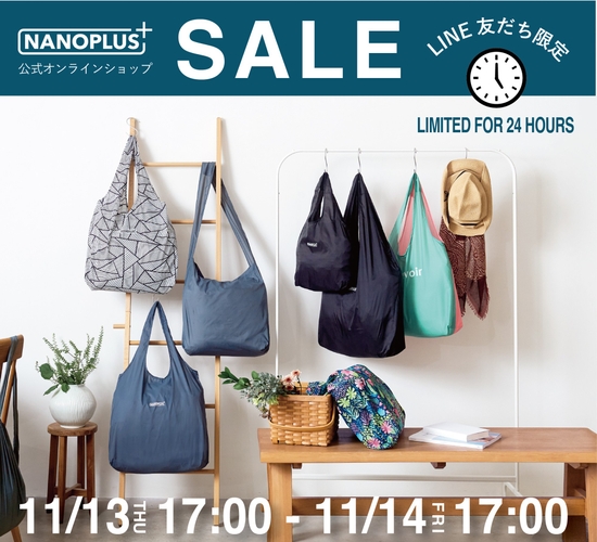 【手のひらサイズのエコバッグ「NANOPLUS」】2025年の売上好調を記念し、「オリジナルポーチ&カラビナセット」プレゼントなど、お得な特典が盛り沢山の24時間限定セールが11/13(木)より開催!