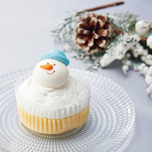 小麦・乳・卵不使用の米粉ケーキ。メレンゲのお顔がかわいい雪だるま型。華やかないちごと黄桃で彩ったクリスマスカラーの2種類のケーキが味わえるセット。