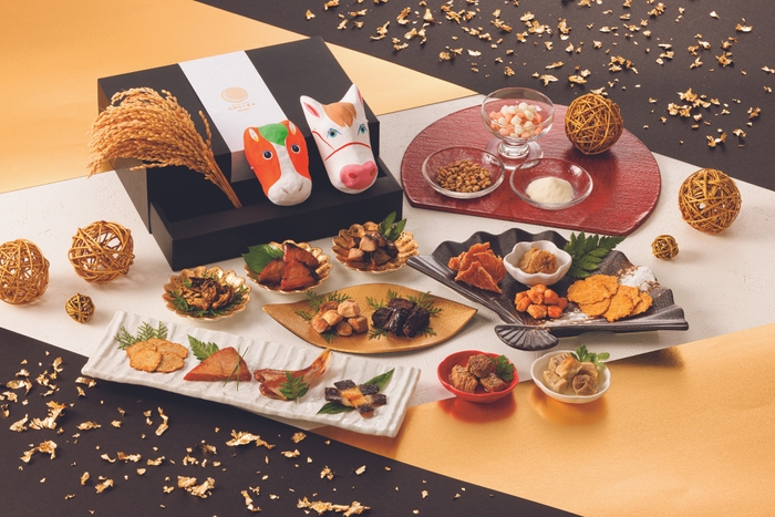 寿のおせちは張り子作家手作りの福ふくお面付き。主役級の食材だけで作った究極のおせち。