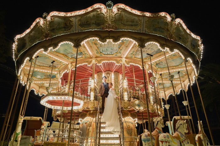 園内各所をロケーションとしてウェディング撮影のできるウェディングフォトロケーションプラン(有料)。イルミネーション開催期間中は、光り輝く園内でロマンチックな撮影ができます。