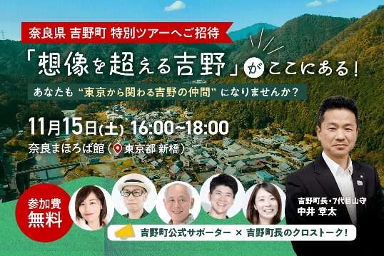 ■「想像を超える吉野」がここにある!あなたも “東京から関わる吉野の仲間” になりませんか?【奈良県吉野町特別ツアーへご招待】