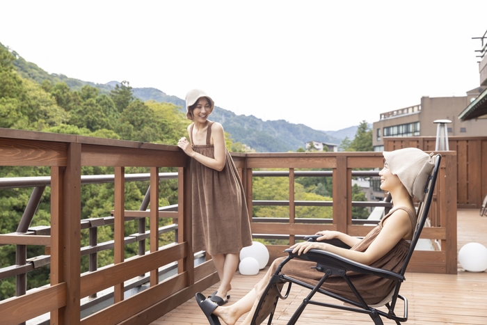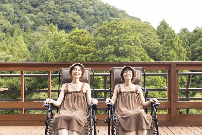 ■鶴仙渓の自然と一体となるインフィニティチェアで至福の外気浴