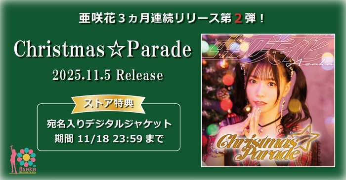 亜咲花 3か月連続リリース第2弾! 『Christmas☆Parade』11月5日(水)より配信開始! 対象ストアでのご購入で宛名入り特典をプレゼント!