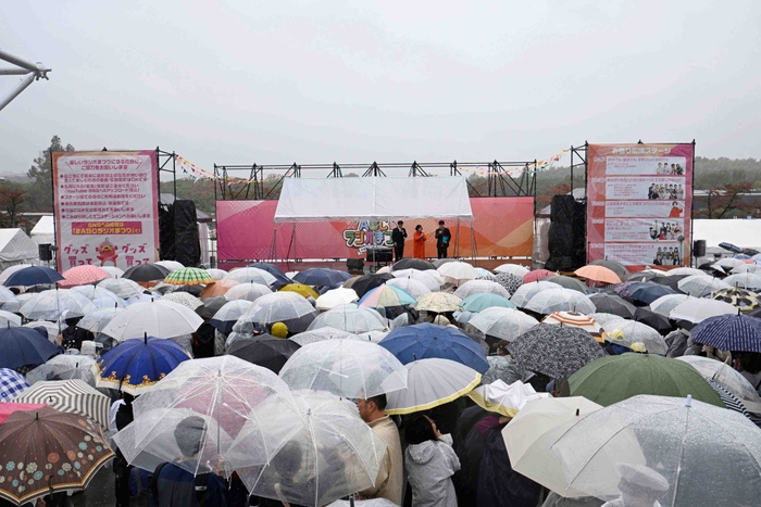 あいにくの大雨にもかかわらず多くのファンが傘を差して集まり、ステージを温かく見守った。この日は、約5年半ぶりとなるニューシングル「人生泣き笑い」(6月18日発売)をはじめ、代表曲「大阪ラプソディー」など3曲を披露し、心に寄り添う歌声で観客を魅了した。
