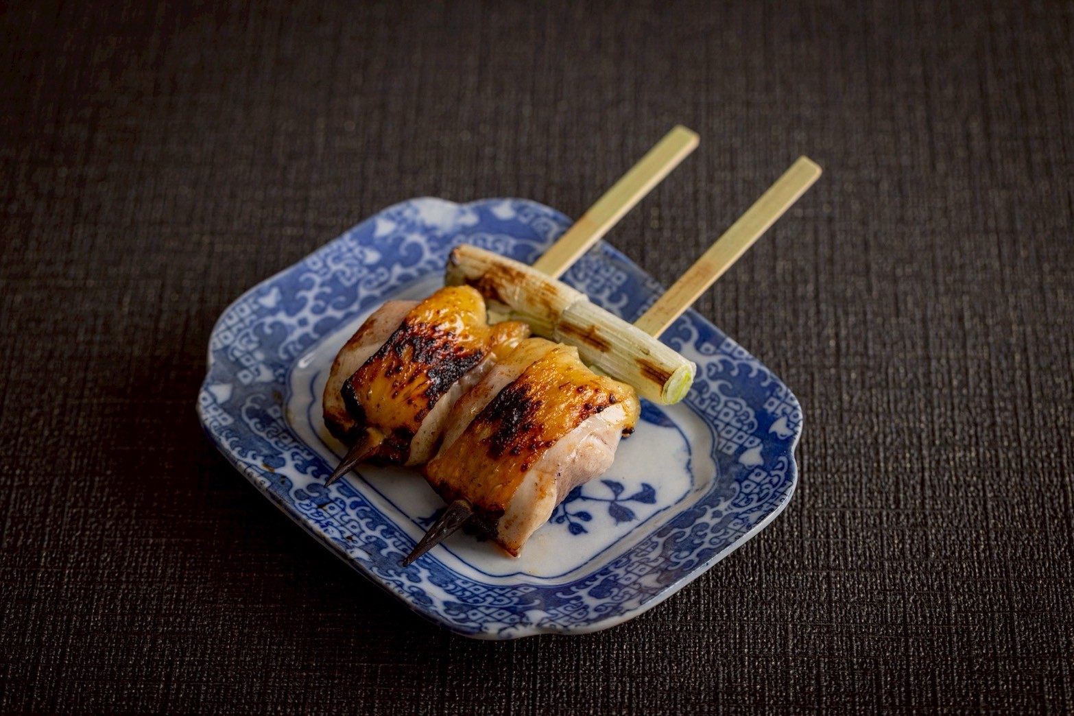 コースは、焼鳥をメインに20種類以上の料理をお楽しみいただける「串焼と炊込御飯コース」(1万2,000円)1本のみ。焼鳥は、既存店でも人気のつくねに「京都南禅寺服部豆腐」の豆腐を使った「つじや特製ふわりつくね」や皮目のパリッとした食感とジューシーな弾力の身が特徴のももなどを、最高級備長炭でじっくりと焼き上げます。このほか、マグロの代わりに叩いた鶏ムネ肉を包む「地鶏のネギトロ」など鶏の創作料理や、炭焼きすることで甘さが引き立つ京都産地野菜、本わらび粉を使うわらび餅などをご用意。コースを通して京都の食“財”の魅力を存分に満喫いただける内容となっています。