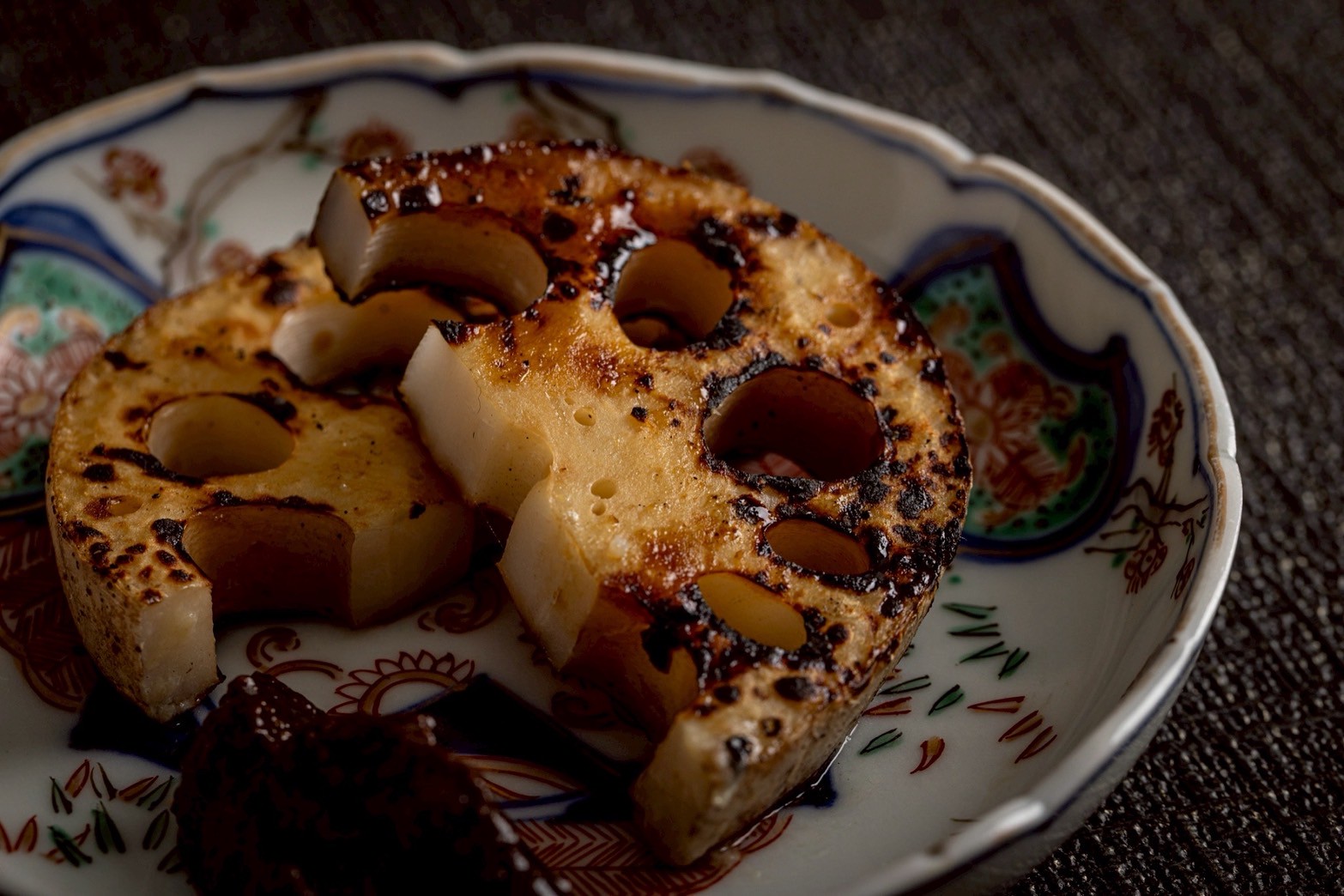 提供するコースは1種類のみ。京都・亀岡の養鶏家・加藤高志さんとともに育てたオリジナルブランド鶏「京七谷赤地鶏」をはじめ、旬のオーガニック野菜や日本酒など、できる限り京都産の食材を使い日本の四季の恵みを存分にお楽しみいただけるよう、焼師や料理人渾身の技術で作り上げたこだわりの料理をご提供します。