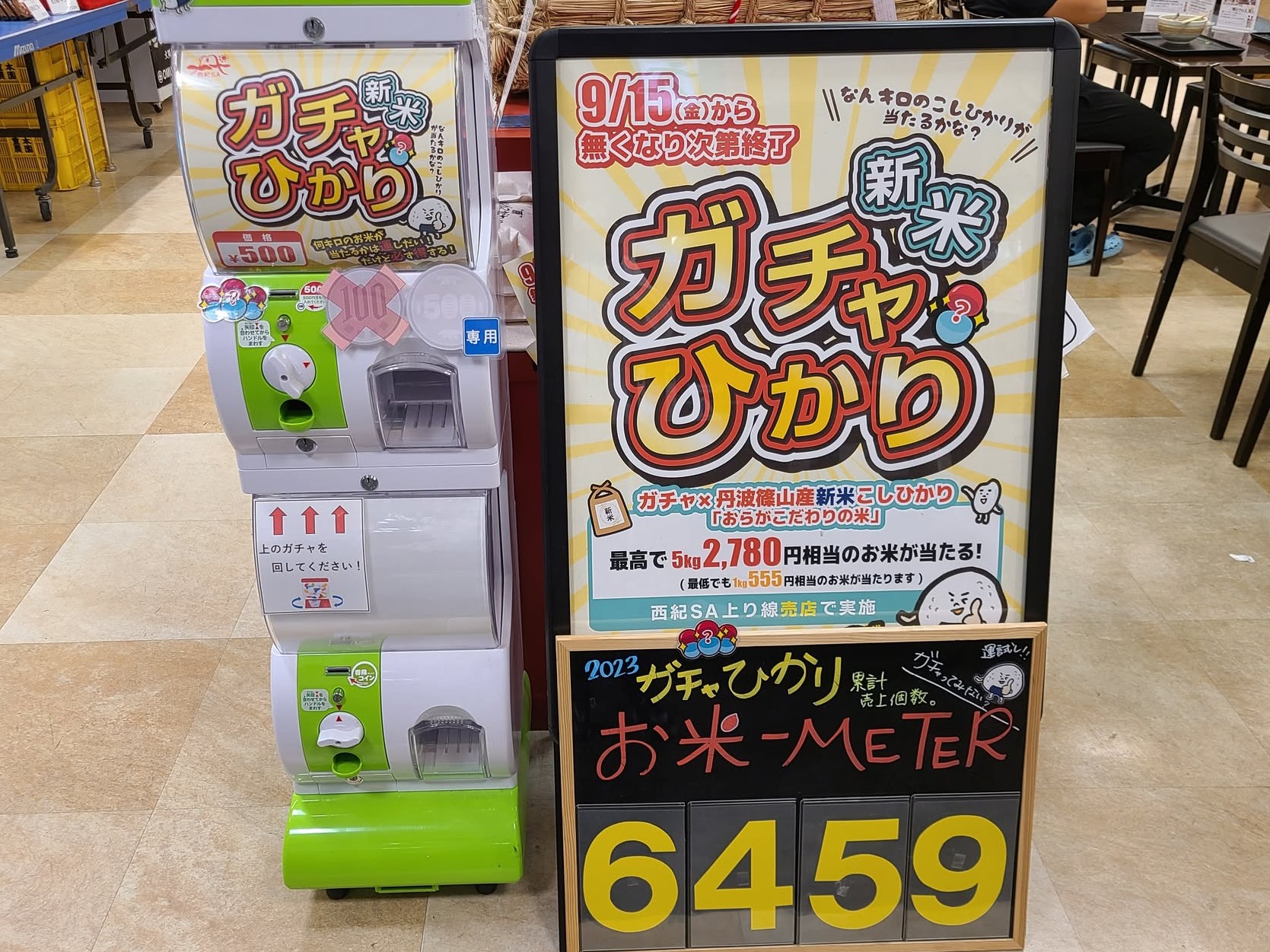 光明興業株式会社(大阪市中央区難波4-2-1 難波御堂筋ビルディング11 階)が運営する西紀(にしき)サービスエリア上り線は11月22日(土)から丹波篠山産こしひかりの新米が当たる「ガチャひかり」を実施します。