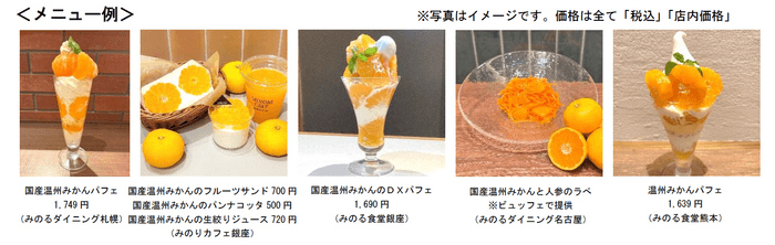 フェアでは、出荷最盛期を迎える、酸味が和らぎ濃厚な甘さが特長の温州みかんをふんだん使用したオリジナルスイーツを各店舗で提供します。