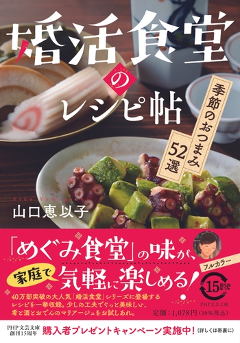 株式会社PHP研究所(京都市南区・代表取締役社長 瀬津要)は、2025年11月11日に『婚活食堂のレシピ帖 季節のおつまみ52選』(山口恵以子 著/定価1,078円[税込])を発売しました。社員食堂勤務の経歴を持つ作家・山口恵以子さんによる『婚活食堂』は、大人の人情小説で累計発行部数は40万部を超える人気シリーズです。本書は山口さん考案の『婚活食堂』に登場する料理を、おでん種の老舗・紀文食品の協力のもと完全再現。作中の料理の登場シーンも紹介されており、物語とグルメのどちらも楽しめるお得なオリジナル文庫です。