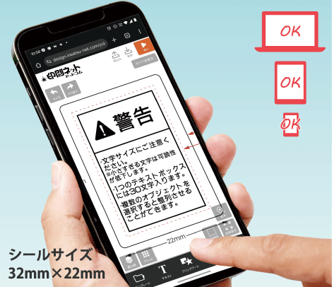 スマホやPCからオリジナル注意書きシールが簡単にデザイン可能に。100枚からご注文いただけます【印刷ネットドットコム】