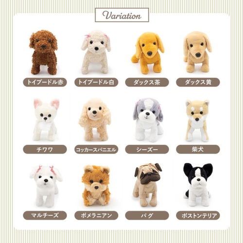 – 種類:トイプードル(レッド・ホワイト)、ダックス(ブラウン・イエロー)、チワワ、コッカースパニエル、シーズー、柴犬、マルチーズ、ポメラニアン、パグ、ボストンテリア