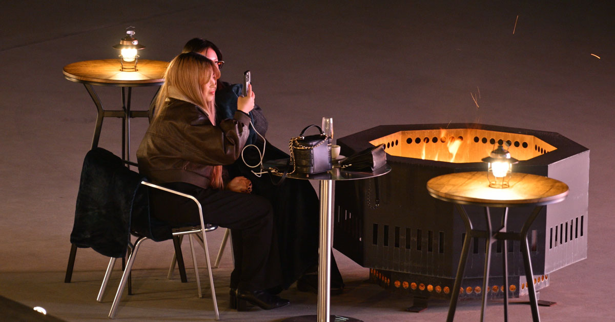 焚火(ファイヤーピット): テラス各所に設置された焚火が、視覚的な暖かさと心地よい温もりを提供し、非日常的な空間を演出。夜景とともに炎の揺らめきをお楽しみいただけます。暖かいブランケットも多数ご用意しており、冷え込む夜も安心して音楽と夜景をご堪能いただけます。