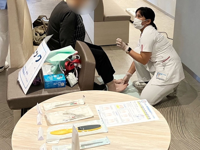 体験コーナーでは、医師による医療相談、看護師による足チェック、管理栄養士による間食相談、臨床検査技師の骨密度測定、薬剤師のお薬相談、健康運動指導士のインボディ測定など、来場者が自分自身の健康状態を知ることができる内容を用意しました。各ブースは終始にぎわい、多職種の専門性を活かした学びの場となりました。