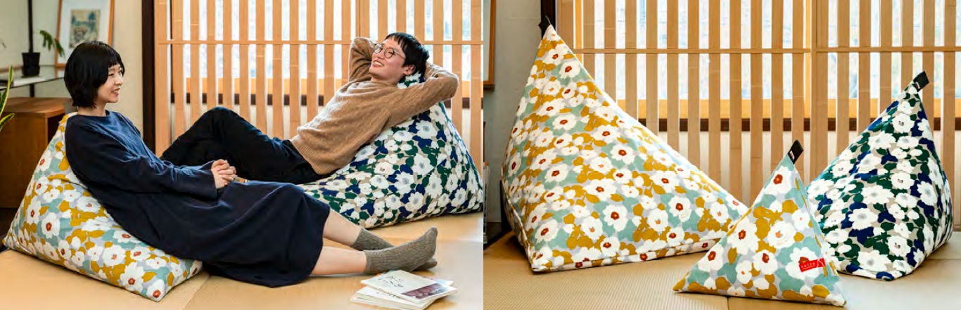 京都のテキスタイルブランド SOU・SOU × 大東寝具工業。 創業100周年記念モデル ビーズクッションtetra(テトラ)。 応援購入サイトMakuake(マクアケ)にて予約販売を開始。