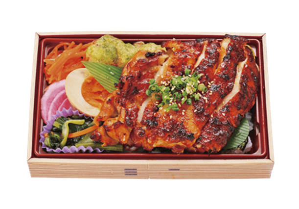 鶏もも肉の西京焼き・竹輪の磯辺揚げ・味付け玉子・小松菜のお浸し・キャロットラペ・漬物の6品が乗ったまさに“贅沢”な海苔弁当です。風味豊かなこだわりの有明産海苔を使用しています。メインの鶏もも肉の西京焼きは、店内で鶏もも肉全体に西京味噌を丁寧に塗り広げ、じっくりと焼き上げており、さらに酒粕を使用することでまろやかな甘みと深みが増しています。これでもかとこだわりのおかずを盛り込んだ、特別感のある逸品です。