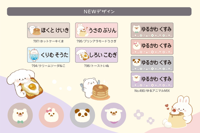 保育園・小学校入園前の必需品。家事の時短を叶えるお名前シールに、くすみカラーの“ゆるアニマル”新デザイン追加