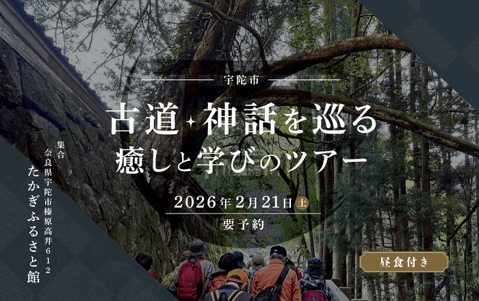 本イベントは、宇陀市内牧地域の「たかぎふるさと館」を起点に、かつておいせ参り参宮者が多く利用した神聖な道「伊勢本街道」、女人高野・室生寺へ至る道「室生古道」、神武東征の神話を遺す「伊那佐山」などを舞台に、地元観光ガイドおよびデジタル音声ガイドの案内のもと実施する、学びと癒やしをテーマとした体験型ツアーです。