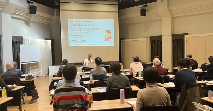 講座前半では、「耳の聞こえ」をテーマに、難聴の基礎知識から診断方法、治療までを解説しました。聞こえの問題は認知機能とも関係があることが知られており、早期に気づき、適切に対応することが重要とされています。軽度から重度の難聴に加え、聞き取り困難症(LiD)についても説明し、補聴器や人工内耳といった支援方法についても触れ、状態に応じた選択肢があることが示されました。