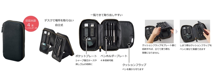 2025年2月に第1弾が発売した後、コンパクトサイズを望む多くの方々のご意見をいただき、第2弾のLiteサイズでは、コンパクトサイズにするだけではなく、軽量かつ持ち運びやすさも追求したサイズに仕上げました。さらに、内部のペンを収容するプレート部分は、本体からセパレートできる仕様(A-3810、A-3811、A-3812) となっており、本体からプレートを取り出して空いたスペースで自由な使い方が可能なペンケースとしてもご使用いただけます。