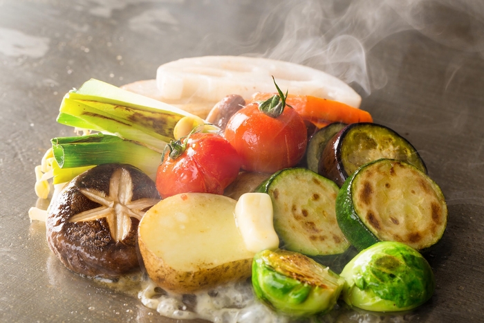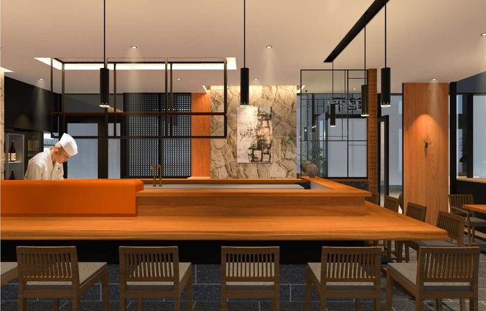 開放感のあるモダンな空間で、和牛と旬の食材を鉄板で焼き上げる大人のための鉄板焼。