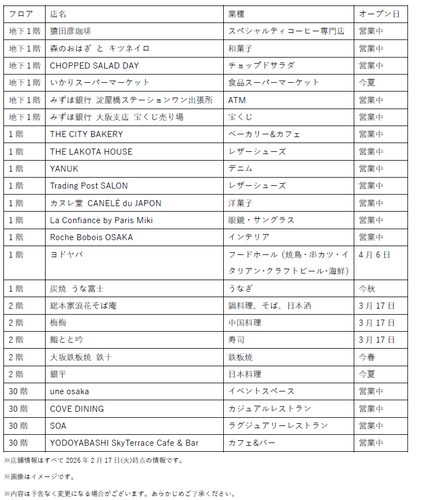 中央日本土地建物株式会社(千代田区霞が関一丁目 代表取締役社長 三宅 潔)と京阪ホールディングス株式会社(大阪市中央区大手前一丁目 代表取締役社長 平川 良浩)は、株式会社みずほ銀行(千代田区大手町一丁目 取締役頭取 加藤 勝彦)と共同で開発した複合施設「淀屋橋ステーションワン」の商業ゾーンにおいて、待望のレストランフロアをはじめ、新業態や京阪沿線初出店を含む飲食・食物販8店舗が3月17日(火)より秋にかけて順次オープンすることを決定しましたのでお知らせします。本リリース記載の8店舗のオープンをもって、段階的に開業してまいりました全24店舗が出揃います。様々なジャンルのレストランやカフェ、スーパーマーケット等が揃うことで、「食」を中心とした多彩な楽しみ方ができる施設へと進化します。なお、商業ゾーンの運営会社は株式会社京阪流通システムズ(大阪市中央区天満橋京町1番1号 代表取締役社長 松下 靖)です。